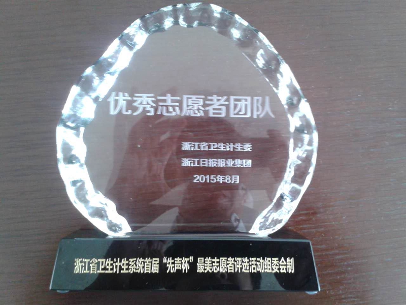 四年如一日,“杭州心连心团契”的义工团队服务获得绿城医院的高度认可和称赞,经医院推荐,在2015年8月25日浙江省卫生计生系统首届“先声杯”最美志愿者评选活动中,被评为浙江省卫生计生系统优秀志愿者团队,且是22个获奖团队中唯一的基督教团体。绿城医院也为此向他们送上祝贺与感谢。