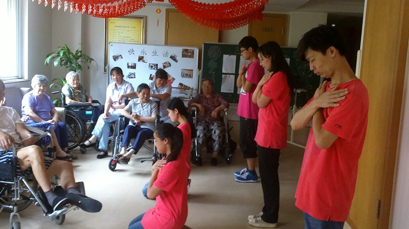 “杭州心连心团契”义工团队到医院探望老人,为他们带去欢乐。(图:斯老师提供)