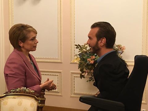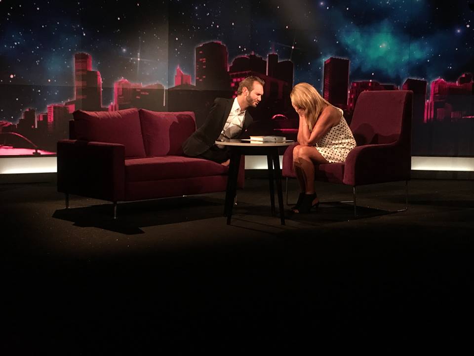 他还被斯洛文尼亚国家电视台访问,尼克幽默的说他在当地已经成为一个媒体名人了。尼克还分享说:"我刚刚和斯洛文尼亚总统(博鲁特·帕霍尔Borut Pahor)见面,这是美好的鼓励和充实的时光。明天我会在斯洛文尼亚数千名学生前发言,所以请为我们祈祷,感谢你的爱,祈祷和支持!