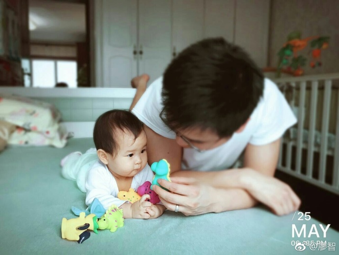 5月25日,廖智微博上分享了自己丈夫陪孩子的温馨照片,并且赞说:“通常不会用‘美丽’来形容一个男人,可我却觉得,一个男人若是敬畏上帝、有温柔的心爱家人、努力工作、善待周遭、诚实正直、不随波逐流、不做暗昧无益的事,无论外在如何,他的生命是配称为‘美丽’。”
