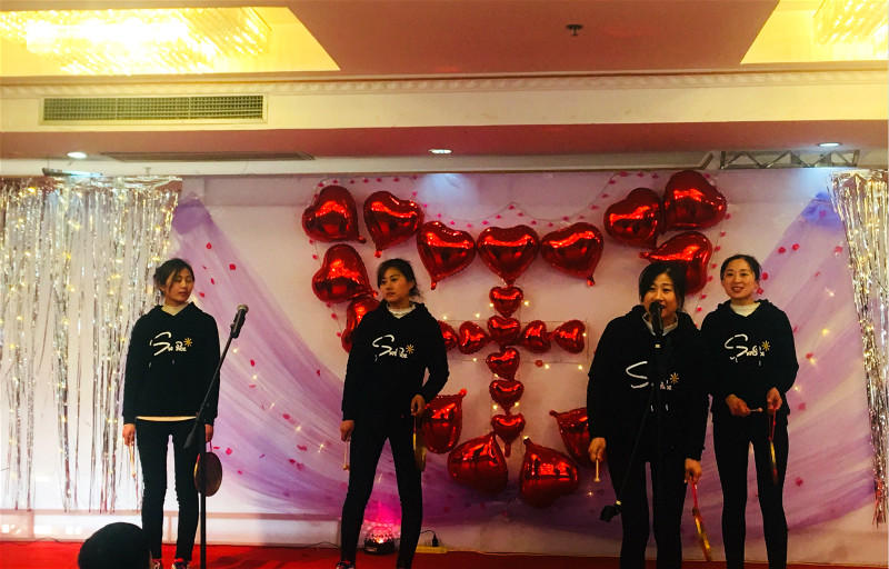 四个姐妹一同表演:福音三句半。