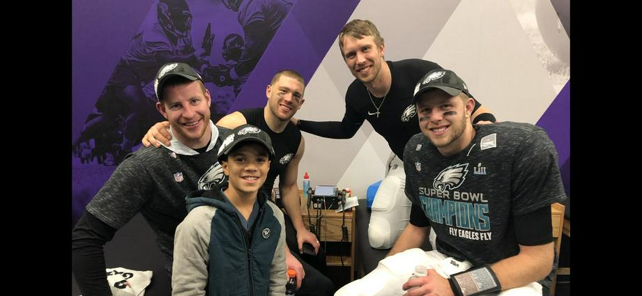 老鹰队赢得比赛后,四分卫福尔斯、温茨、内特•沙菲尔德(Nate Sudfeld)与近端锋扎克•厄茨(ZachErtz)一起祷告。邓基在推特上分享了这个特别时刻,他11岁的儿子贾斯汀也在场:“所有的欢庆并抛五彩纸屑后,贾斯汀和老鹰队三个四分卫尼克•福尔斯、卡森•温茨、内特•沙菲尔德及近端锋扎克•厄茨叙旧。他们自己在屋子里——祷告并且感谢神。他看到这些真棒。”邓肯是直言不讳的基督徒,2007年成为第一个赢得超级碗冠军的黑人总教练,他当时任印第安纳波利斯小马队总教练。