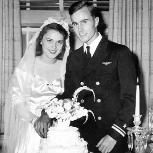 (年轻的老布什与芭芭拉在教堂举行婚礼)