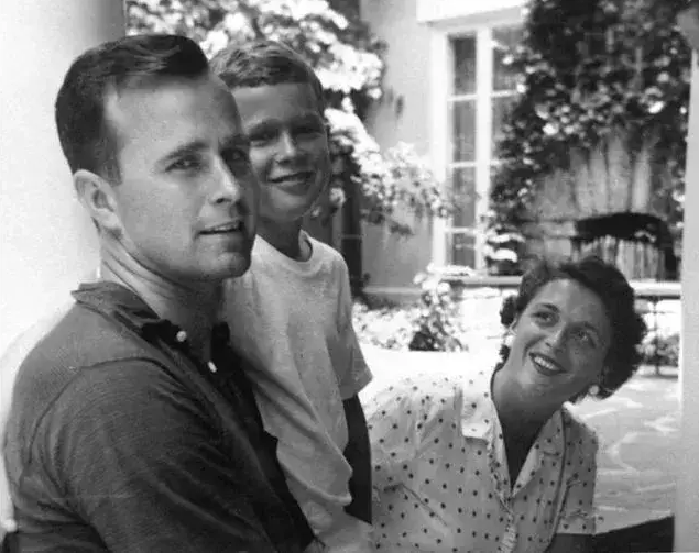 (老布什与妻子芭芭拉和他/她们的儿子)