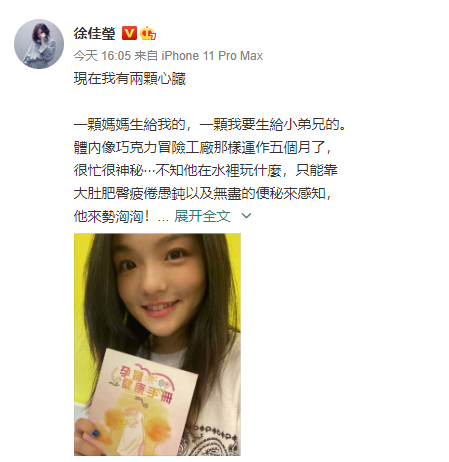 7月27日,基督徒艺人徐佳莹在新浪微博上宣布怀孕的喜讯,提到:“现在我有两颗心脏。一颗妈妈生给我的,一颗我要生给小弟兄的。”文中透露,徐佳莹已有五个月孕期,并且用“他”作为称谓,疑似是个男宝宝。