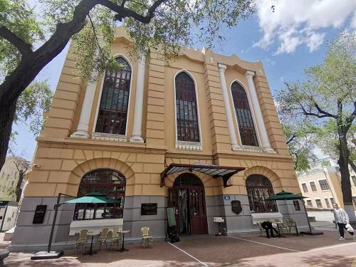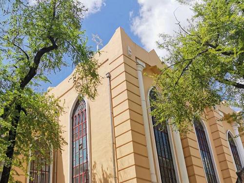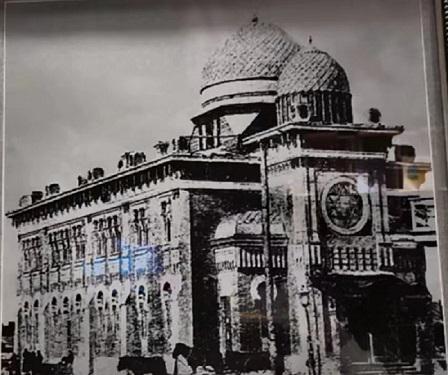 史料记载,老会堂是于1907年5月3日奠基,1909年1月落成,总会堂为二层砖混结构,门窗设计由尖拱、圆拱组成。建筑顶部有大小两个穹顶,擎起大卫之盾六角圣星。这座老会堂的工程设计师是H.A.卡兹—吉列。