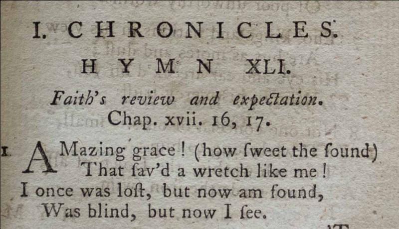 1773年,牛顿为元旦布道写下了这首脍炙人口的诗歌,并在奥尔尼的圣彼得和圣保罗教堂首次传唱,至今已经有250年的历史了。约翰·牛顿的《奇异恩典》现在被认为是世界上录制最多、传唱次数最多的赞美诗。诗歌的主题是源自《历代志上》17:16-17 中的圣书段落,讲述的是上帝的怜悯。大卫王向上帝祈祷说:“耶和华 神啊,我是谁,我的家算什么,你竟使我到这地步呢?” 牛顿发现这祈祷与他自己的生活有相似的地方,因为他就是从罪恶和海上风暴中被拯救出来。
