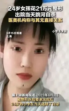 小李本来带着极高的期望,以为整容可以给自己的生活带来焕然一新的变化,但没想到的是她花尽了自己的积蓄不说,反倒是变得比以前更加糟糕。在极度的绝望之下,小李竟然没有选择用合法的程序来维护自己的权益,而是无力的留下了“永别”二字后,一跃跳进了河里结束了自己年轻的生命。