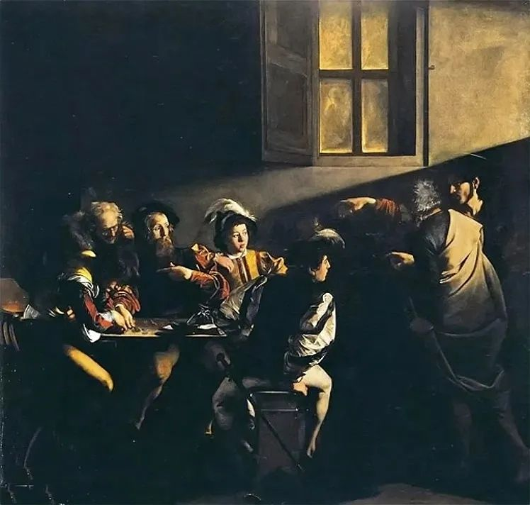 这幅画作《召唤税吏马太》是画家卡拉瓦乔创作于1599至1600年间的一幅油画。使徒马太的形象刻画得非常成功,给人以真诚,厚道的感觉。正如经上所说他做过农民,手脚粗壮,神情憨厚,是耶稣需召唤的“能认识自己职业是被唾弃的人”