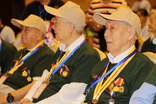 来自爱德基金会官网消息,9月2日下午,“英雄之名 老兵未远——聚首·70年”抗战胜利纪念活动在江苏省会议中心举行。来自全国50余位曾经英勇保卫祖国的抗战老兵们欢聚一堂,与社会各界人士共同庆祝中国人民抗战胜利暨世界反法西斯战争胜利70周年。 此活动由是由民建江苏省委员会、民建南京市委员会、爱德基金会和南京民间抗日战争博物馆联合发起,在纪念历史事件的同时也邀请人们关注和铭记这些为国家、民族做过重大贡献的老兵们。 当天,两位抗战老兵代表王维良和张修齐分别致辞并宣读了《和平宣言》。老人们激动地回忆起70年前的峥嵘岁月,他们难忘战友在身边一个个倒下,难忘每前进一步所付出的巨大代价,难忘每一寸土地都是用鲜血换来。老兵代表张修齐激情昂扬地宣读了《和平宣言》,他说,国难当头,保卫家园是义不容辞之责任,他们从不后悔参军,更不后悔为保家卫国付出的青春。虽然他们这些老兵已经从当年的青春少年变成了如今耄耋老人,但是他们反法西斯的决心从未改变,统一艰苦事业的决心从未改变,反对战争维护世界和平的决心更是从未改变。他坚定地表示,作为曾经战争的亲历者,深刻地体会到战争的残酷。他代表老兵们呼吁大家铭记历史、缅怀先烈、珍爱和平、开创未来。