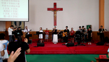 一首《接耶稣进来》将赞美会推向了高潮,在欢快节奏的渲染中,台上台下的所有人都不由自主的起身欢呼;紧接着《爱仇敌》《十字架》让现场更是高潮不断,他们双手举至头顶用力的鼓掌,此时大家融为一体,没有任何伤害,仿佛是十字架画了一张平安喜乐图.....