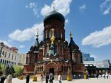 圣索菲亚教堂便是哈尔滨市标志性建筑之一。她是一座拜占庭风格的东正教堂,以独特的俄罗斯传统风格“帐篷顶”和“洋葱头”而闻名,是一处独特的建筑景观。教堂是由俄国设计师主持设计的,始建于清光绪三十三年(1907年)。