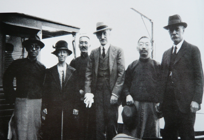英国1926年前后也决定退回部分庚子赔款,当时英方和中国各出三人,组成委员会,具体商办此事。英方三人,具体办事的就是苏慧廉,中方对应的则是胡适。有一本香港商务出版的书,图片来自胡适的私人相册,在这本相册里,我看到他和当时处理庚子赔款的其他五人的合影,虽然合影中没写出各人的名字,但我一看照片知道,右边第一人是苏慧廉。那也是我第一次看见正面的苏慧廉形象。