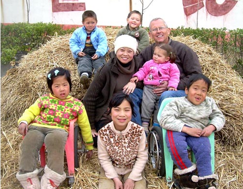 斯蒂芬和新玮共有7个孩子,其中3个是他们收养的残疾患儿:天恩,天逗和荷花,另外5个是自己的孩子,分别是5岁的男孩Zuriel,3岁的男孩Azariah、2岁的女孩Batkol和刚出生4个月的女孩Raamiah。天恩是在甘肃一个小学校的门口被人捡到的,那时他刚刚出生,在地上躺了3天4晚居然还活着。天恩患有脊膜膨出症,也就是先天脊柱断裂、神经外露,腰以下完全没有知觉。比天恩小两岁的天逗也患有脊膜膨出症,荷花的病情是唇腭裂,手术后已痊愈。最初的岁月里,新玮正怀着他们的Azariah,她一天要分别为天恩和天逗插5次尿管,大便都需要她用手抠出来,还要照顾自己的不到一岁的儿子Zuriel。爱哭的天逗时常撕心裂肺地哭闹,这一切仿佛灾难一样。但斯蒂夫和新玮坚信,爱会使这一切变得不再艰难。