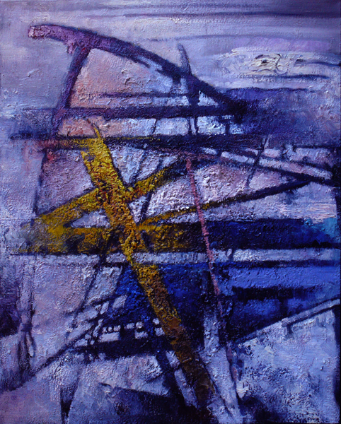 张伦所言不多,总是试图用整个生命拥抱真实与艺术,并在艺术中融贯事实与真理的界限,将两者纳入其中,作品中的自我、意境以及真理的话语浑然一体,消融于充满时间流动的形象色彩之中。他反对将自己纳入任何艺术史和艺术概念的范畴之中,语词沾染了太多的世俗尘垢,粘滞着权力欲望和野心的艺术史归纳,只能意味着一种苟且的招安,透露出来的只能是一个人灵魂的虚弱和迷茫。作为一个纯粹的艺术家,一个有着神的儿女身份的艺术家,张伦拒绝将自己归入任何风格流派。初次观赏他的作品,会以为他是一个抽象主义画家。张伦的作品的确抽象,但又是超象,有如唐代司空图在《二十四诗品》中所说的“超以象外,得其怀中”,借物象表达出了超越于物象之外的精髓。张伦的作品虽然抽象,但绝不是抽象主义,更不是抽象得毫无意义,其作品无法以任何主义加以定义和形容。他的作品中蕴含着一种网状的情感结构和叙事方法,是对真实生命现象的灵悟之结晶,带有主义性的单向思维和情感结构对他的作品是完全不适用的。不求一种宏大而自恋的带有虚伪性的刚性建构,只求在时间的流逝中品读生命的真理,在瞬时而绵延的物象浮现消失之际感悟时间中所蕴涵的神性之光。