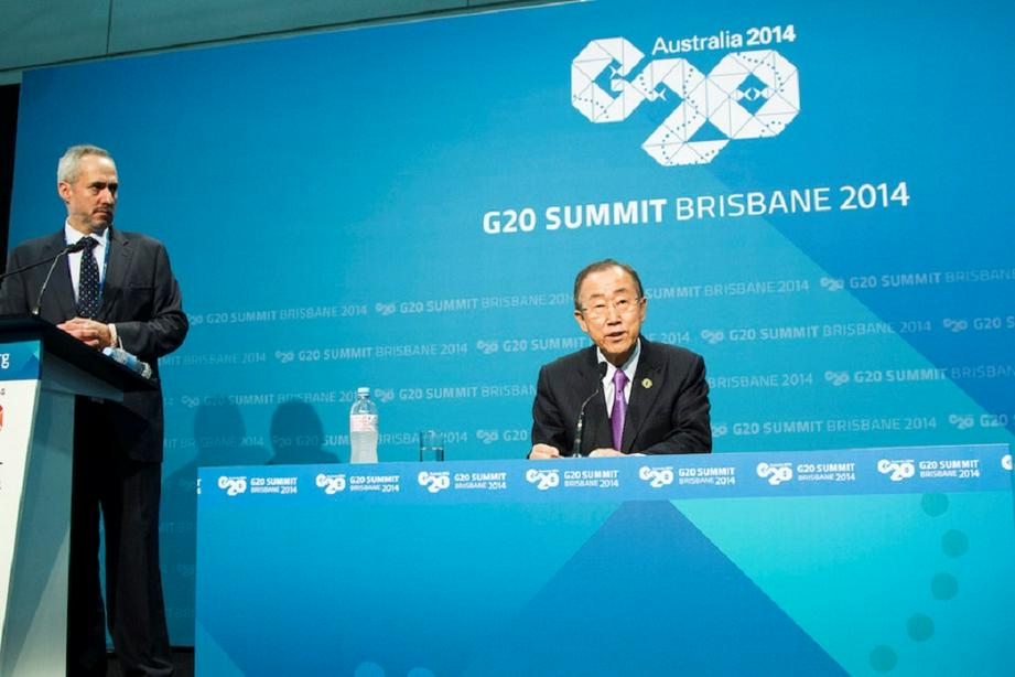G20峰会正在澳大利亚布里斯班举行。当地时间11月15日,联合国秘书长潘基文秘书长在记者招待会上表示,世界面临严重的安全、发展和环境挑战,人们和地球所承受的压力在与日俱增,他呼吁20国集团国家努力运用自己的能力,并且也承担起这样的责任为世界确定一个更加美好的发展方向。