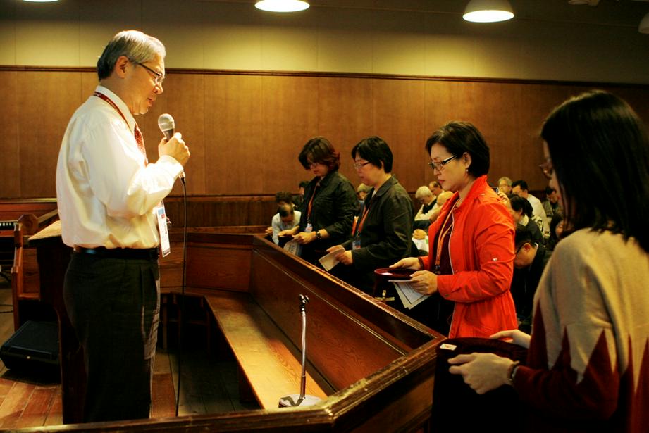 大会此次在韩国“爱的教会”的世界宣教中心大厅举行。开幕式上,世界华福中心总干事陈世钦牧师首先邀请“爱的教会”的主任牧师吴正贤作为嘉宾致辞。吴牧师分享说,当他听到中国的牧师们赞美,“感到特别有恩典,感到里面有很多圣灵的感动”。他说之前听过有个牧师分享说“日本教会是think(思想) church,韩国教会是pray(祷告) church,中国教会是praising(赞美) church“。他还谈到,”福音西进,是整各个东亚教会的方向。之前,福音一直是东进的,从耶路撒冷到英国到美国,而如今英国是福音西进的时候了。“