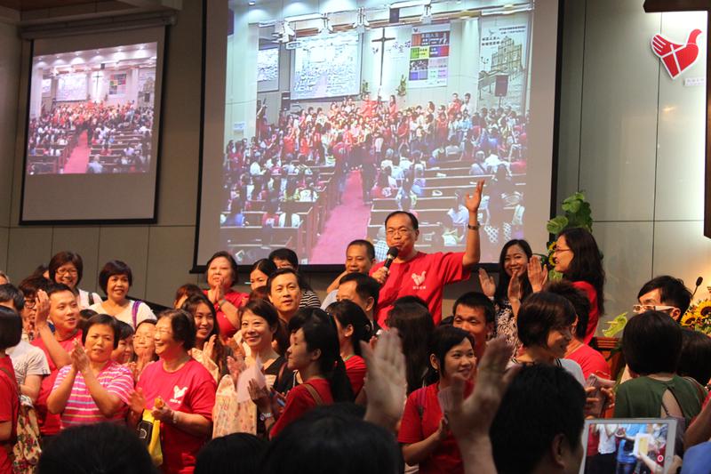 当晚,在宣道堂牧师的呼召下,有数十人上台愿意决志信耶稣,大家一同祷告、拍手、欢呼赞美神的奇妙作为。