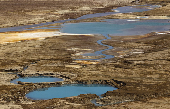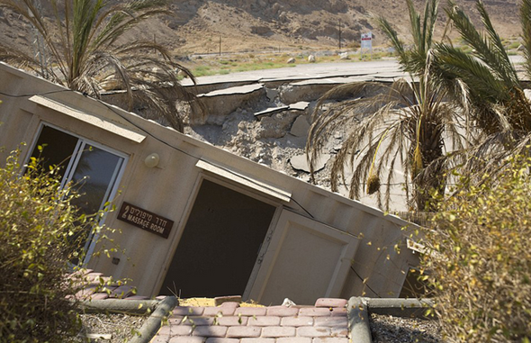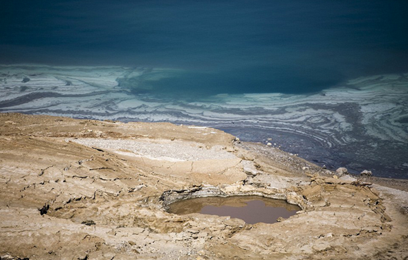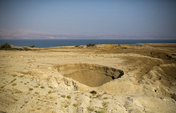 以世界上最深和最咸的咸水湖而闻名于世的死海,由于人为因素导致其以色列沿岸正快速缩小,数以百计的巨大沙坑正在形成,许多电源线、公路以及活动住宅正被吞噬。