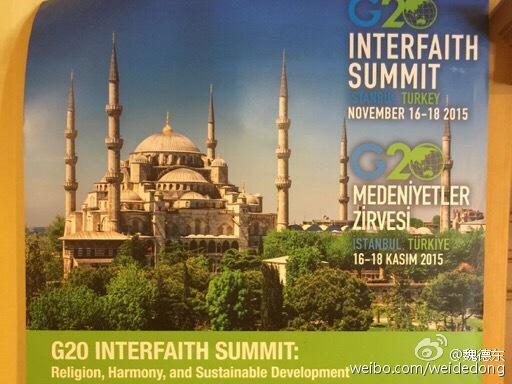 11月16日至18日,G20信仰间峰会在土耳其伊斯坦布尔举行。作为G20峰会的一部分,信仰间峰会肇始于去年的澳大利亚布里斯班,现已作为G20峰会的常规分会延续下来。在时间上,今年的G20领导人峰会为11月15日至16日,信仰间峰会错后一天;在地点上,信仰间峰会避开了领导人峰会的安塔利亚,选择了700公里之外的历史名城伊斯坦布尔。