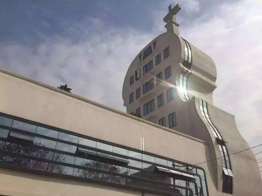 小提琴总高为38米,力求高擎十字架,让赞美飞扬,其背后设计理念如下: