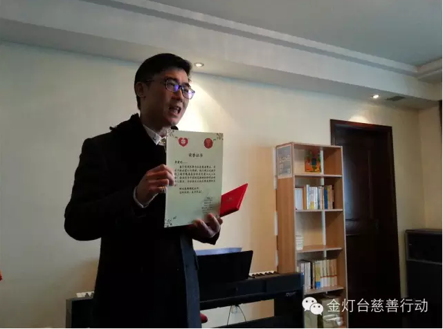 卞秉彬弟兄代表金灯台义工组,向过去一年里对金灯台义工组进行过一些无私帮助的弟兄姐妹们赠送了荣誉证书,以此表达对他们默默付出的肯定与谢意。慈善讲坛环节中,卞弟兄为大家做了题为《新年、新气象、新生命》的祝福证道。证道中,他回顾了2015年来在侍奉上的得与失,谈到感恩与亏欠,对即将开始的新的一年2016年寄托了无限美好展望。