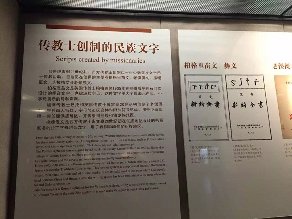 博物馆展出的对传教士创制的少数民族文字的纪念。