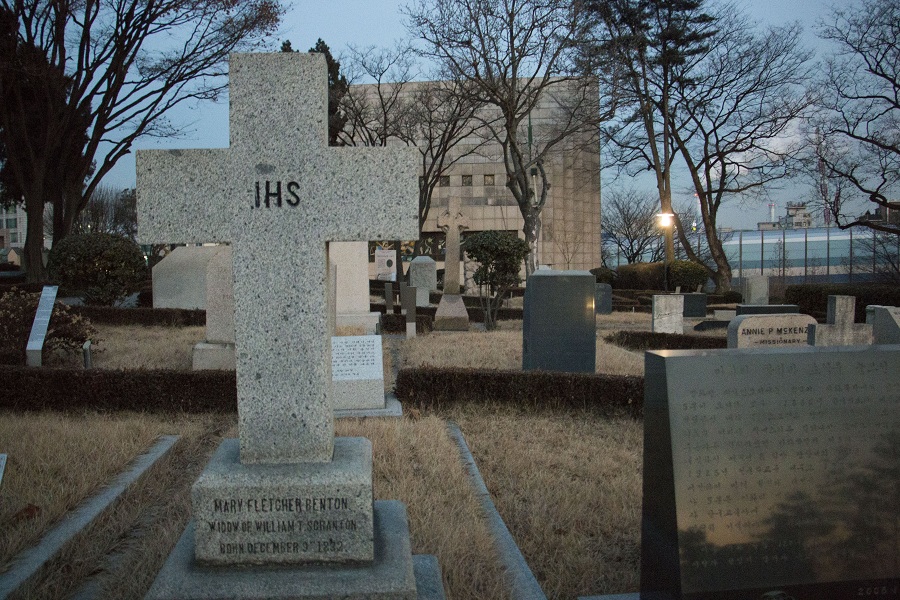 这里纪念着埋葬于此的传教士们的墓碑。