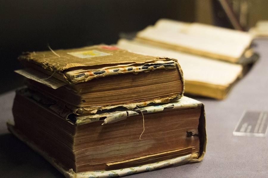 传教士当年使用的圣经、书籍和笔记。