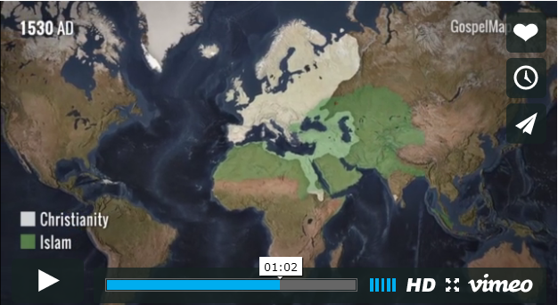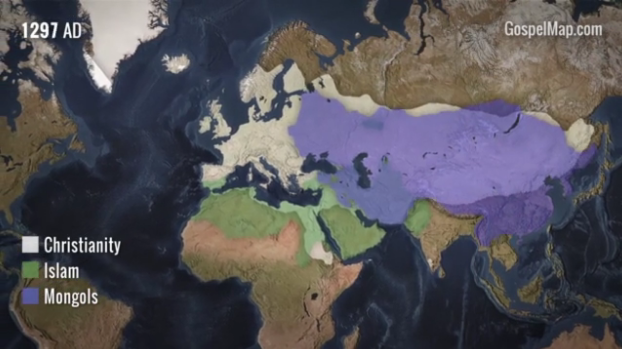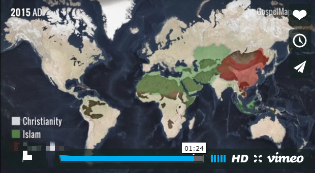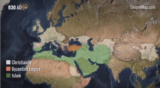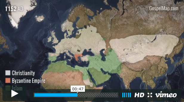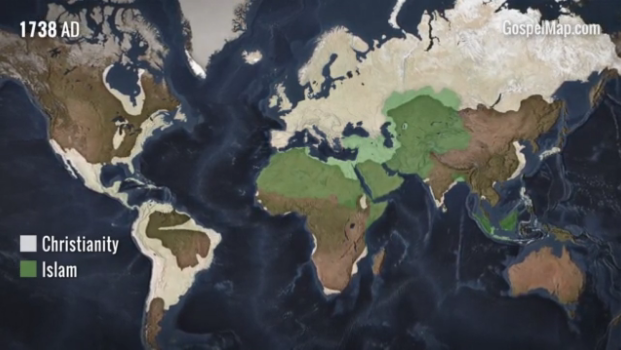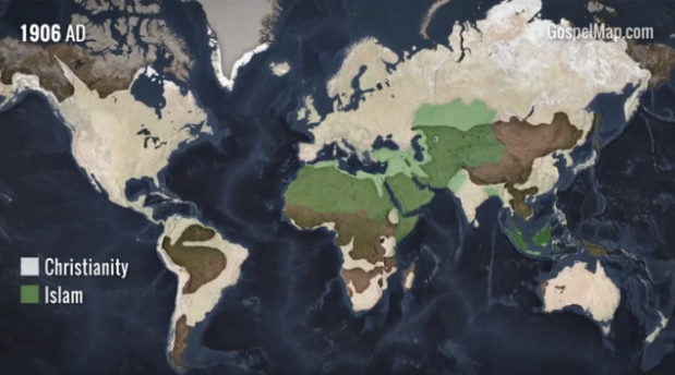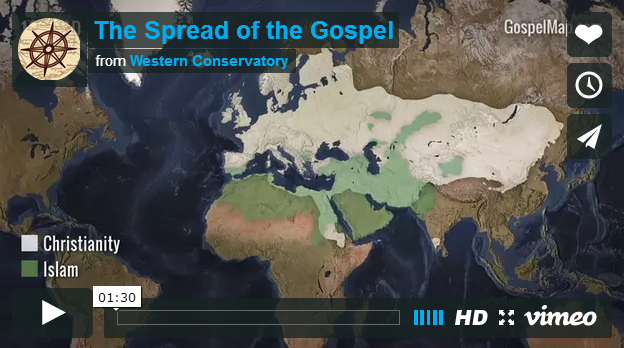 日前,由西方艺术和科学保存(Western Conservatory of the Arts and Sciences)制作的一个90秒的短片回顾了基督教从创立之初自中东开始如何传播成为一个世界性宗教的。其中可以看到在历史上9世纪时,基督教曾因为伊斯兰扩张的原因而短暂退后,这段时间在中东和欧洲的优势不复存在,但随后恢复过来。尤其是伴随着大航海和新大陆的发现,福音从亚非拉扩张到全世界的激动人心的过程
