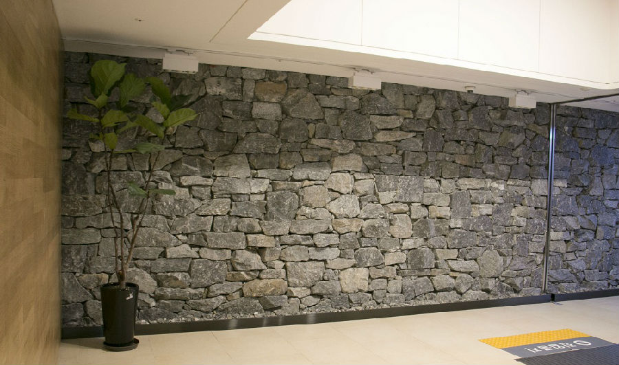在地下,立着一面石头砌成的墙,“这是挖地三年从这里挖出的石头。”这位牧师介绍说,整个新大楼从开始建到落成总共花了8年的时间,最开始的3年只是挖地,一方面教会为了扩大空间需要建在地下,礼拜堂下面还有几层包括停车场一直延伸到地下30多米,但因地质属于多岩质,不得不艰难而细致的一块块把这些石头挖出来,而建成之后把这些石头修成一栋特殊的墙纪念这段经历。