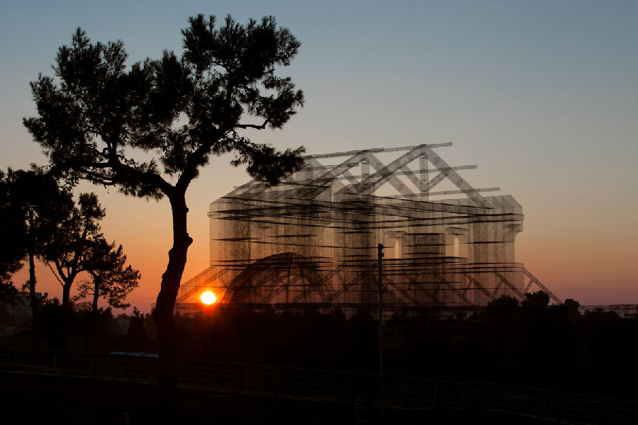 然而在日前,一位意大利艺术家兼设计师爱德华多·特雷索尔迪(音译)为南部普利亚区的 Siponto 小镇设计建造了一个装置,使当地当地一个考古遗址上消逝多年的大教堂再次重现。