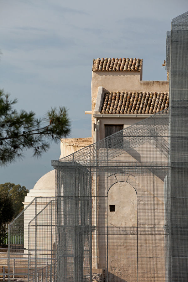 据好奇心日报报道,Siponto 小镇是普利亚区最为重要的教区之一,11-12世纪时,该小镇曾有一座巍峨的教堂屹立在此,然而13世纪时,此教堂被毁与一场地震之中。特雷索尔迪以及他的团队与意大利文化遗产活动部、普利亚区的考古管理部门合作,用金属丝网在残留的古建筑遗迹上勾勒出了教堂原本的模样。