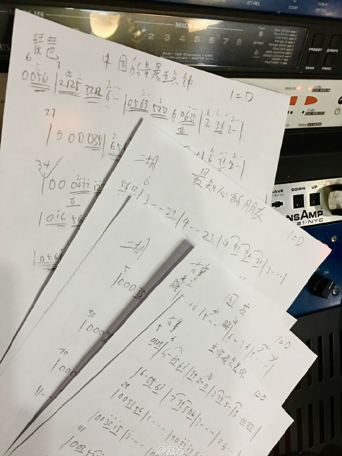 录制过程中的乐谱。