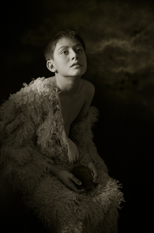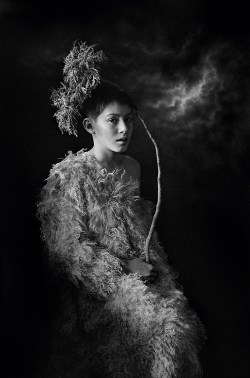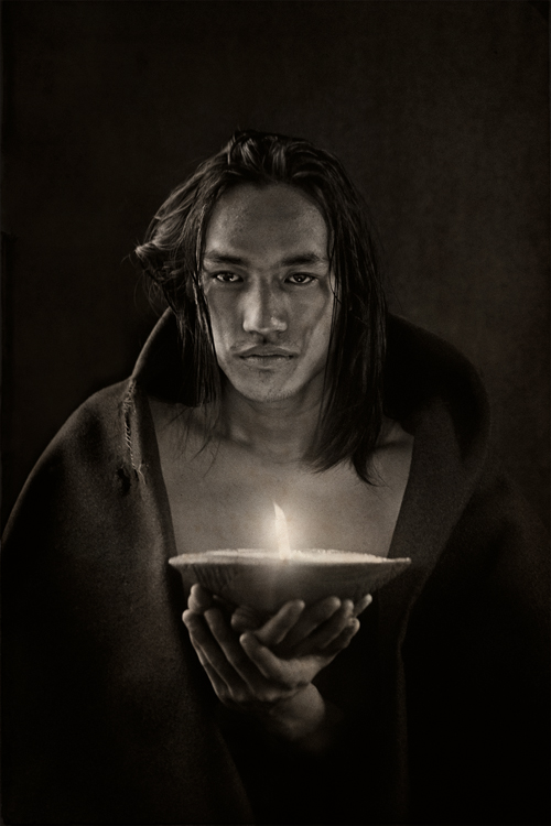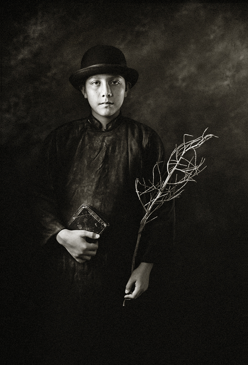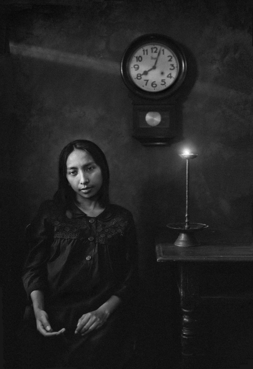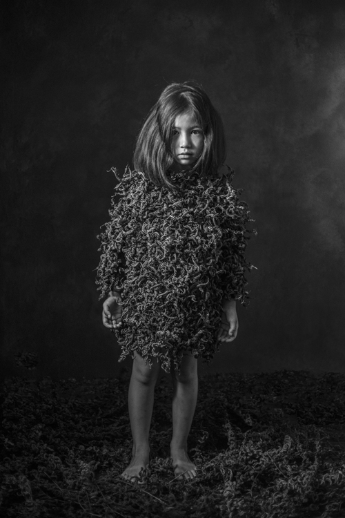 《主的使女》这幅照片拍摄于台湾排湾族福音歌手郭晓雯姊妹离世前6天。晓雯于怀孕初期检查出罹患直肠癌,医生要她立即拿掉孩子以利抗癌。经过一番天人交战,晓雯最终拒绝了医生的建议,坚持保全胎儿。怀孕期间她吃足苦头,终于产下一名健康可爱的女娃儿,但由于错失最佳的治疗时机,癌细胞扩散。在她离世前6天,我受命拍摄晓雯最后的容颜,晓雯的丈夫说:因为她很喜欢你拍的肖像所传递的讯息。我如何拒绝?却惶恐不已,生怕辱没所託。她发现我的紧张,遂以无比的温柔安抚我:“你别担心,我可以,尽管把我们的工作做好。”镜头前的晓雯,俨然是一名圣徒,向我们见证了,爱更胜于求生,爱比死更坚强。(文字|冯君蓝 )