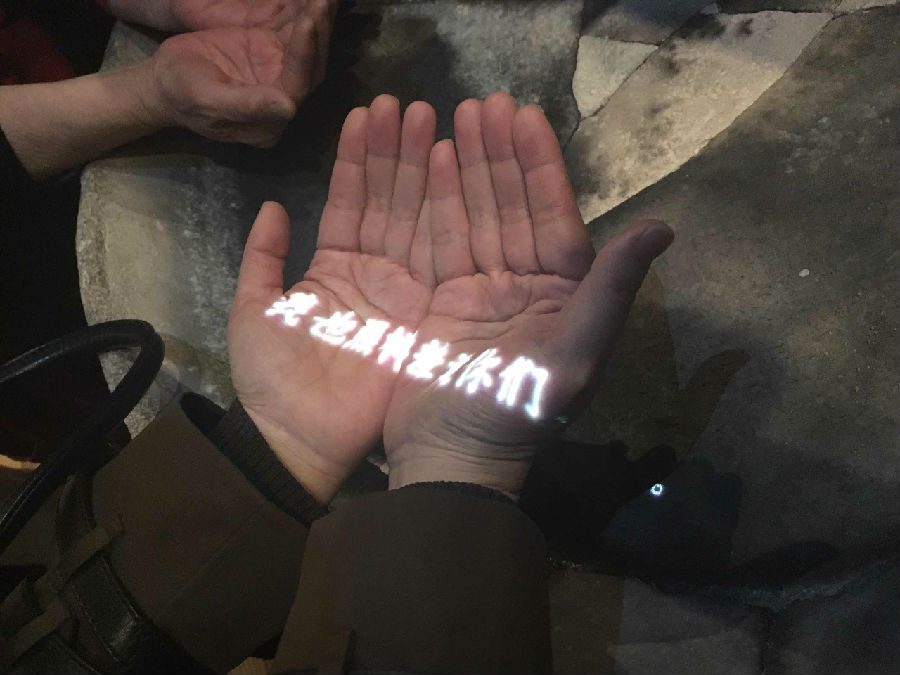 在参观完传教士墓园历史博物馆最后结束时在出门处的灯打出经文来。