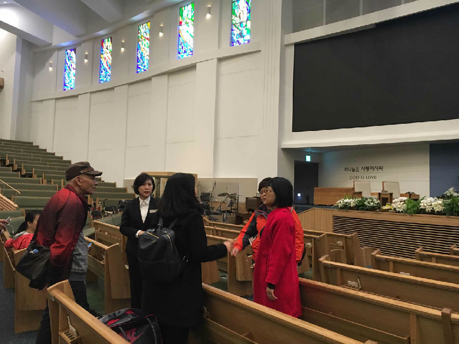 在参加汝矣岛纯福音教会礼拜时,也有姊妹分享说:“第一次见这么大的场面 ,这么多的人秩序井然,也无人喧哗,一边听着韩语敬拜一边看着屏幕上的中文歌词,(讲道时可以戴上耳机听到同声翻译,可以不用担心听不懂牧师说什么)虽坐在最边上的外国人专席,也能感受到会场圣灵的恩膏,听着歌声,想起主的爱,我的眼泪就止不住地落下……”
