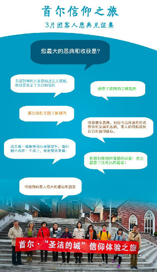 复活节期间,“首尔信仰之旅——体验不一样的韩流”行程圆满结束,20多位中国的弟兄姐妹拜访了许多重要的景点,了解韩国基督教历史和现状,恩典满满。