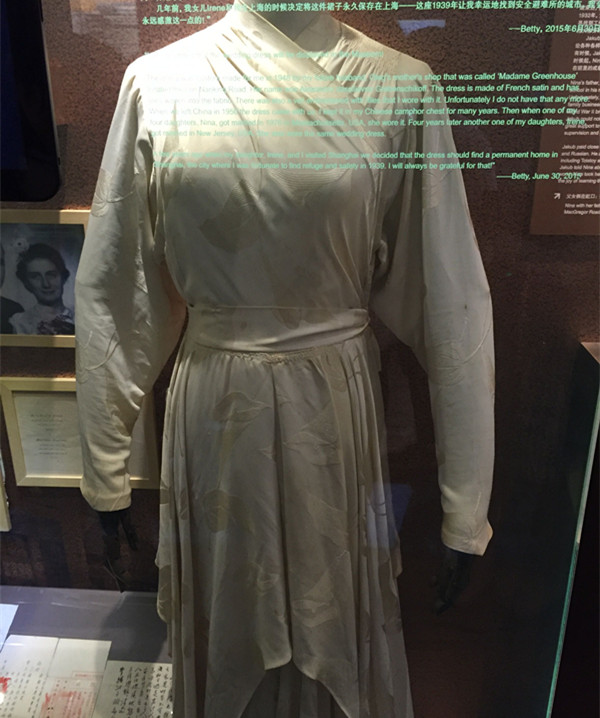 犹太女人的婚纱,曾有一对母女两代都穿过它在上海举行婚礼。后被纪念馆收藏。