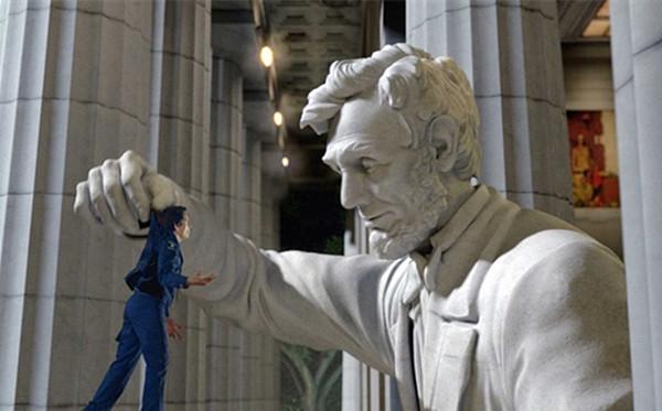 每部电影正义与反派都有一场不大不小的“苦战”,然而《博物馆2》最后的交战却结束得简单而意外——五米八的林肯在双方交战时破窗而入,大手一挥就将兵丁完全扫荡干净——这种秒杀性的战役毫无悬念地结束了,反派BOSS的军队还未雄起便被送回了他们来的地方。巨人林肯轻轻松松解决了一直以来都让莱瑞苦恼的战争,回到了他的纪念堂。