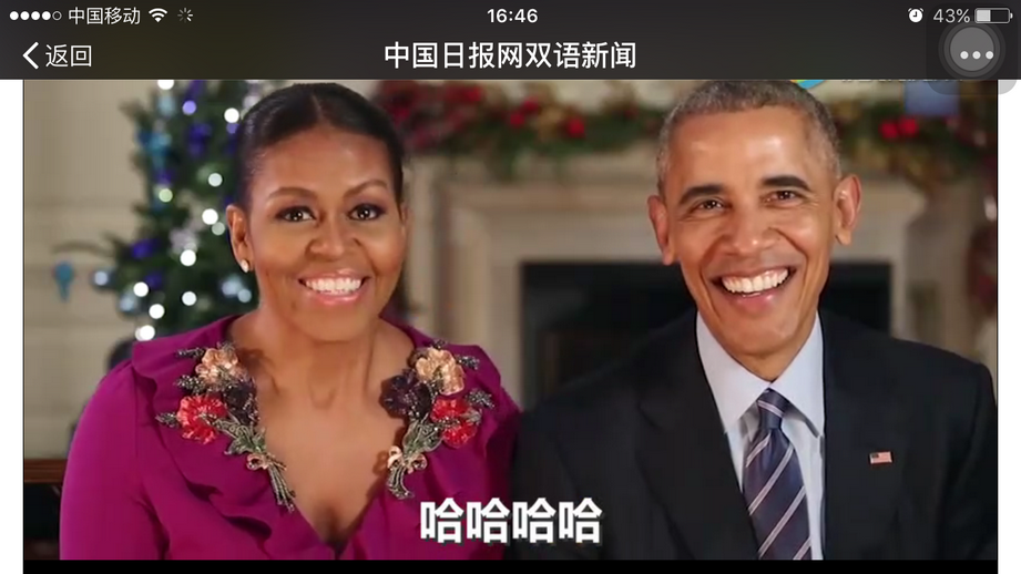 今年是奥巴马在白宫度过的最后一个圣诞节。但即将卸任的奥巴马与夫人米歇尔并没有受其影响,在圣诞节的演讲视频当中,他/她们二人反而以极其幽默、轻松的方式,向全美人民传达了圣诞节的问候。