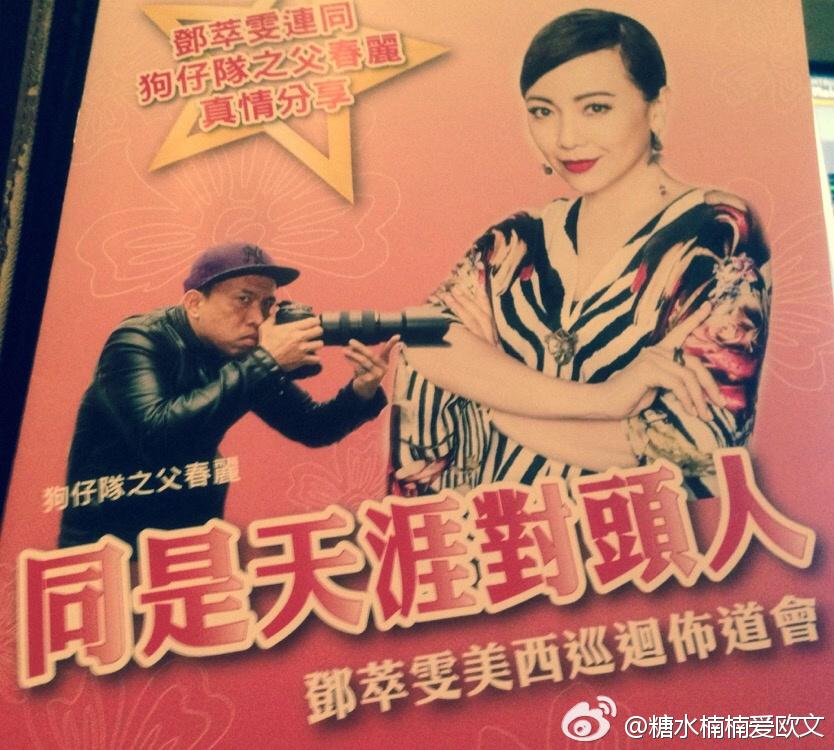 2月4日至2月13日,基督徒艺人邓萃雯辗转美国西部旧金山、加利福尼亚、洛杉矶等地,举行主题为“同是天涯对头人”的美西巡回布道会。布道会上,作为艺人的邓萃雯和曾经作为艺人的“对头”、“狗仔队之父”的村上春丽弟兄做联合分享。