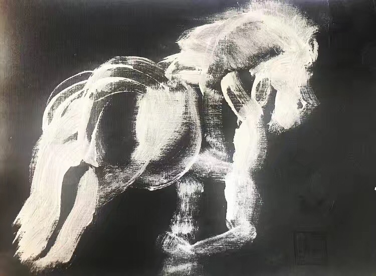 当时深陷无力感的我不得不停止去思考为什么爸爸得了癌症:邻居心脏病发倒在地上第一位冲上前去救助和拨打120的爸爸,童年记忆里隔壁着火立即披上外衣前去打水救火的爸爸,摆平过黑社会捣乱家伙的爸爸,常常被我和妈妈逗不会轻易拒绝他人又有点愤世嫉俗的老好人爸爸。外公外婆在世的时候,爸爸每周都载我和妈妈一同去看望外公外婆还有顺路接送其他亲戚,从来没有抱怨,虽然当时家庭并不富裕但是爸爸做任何事情都很努力和用心,这些没有表达过的感谢也被我画在了画布上作为情绪的出口。