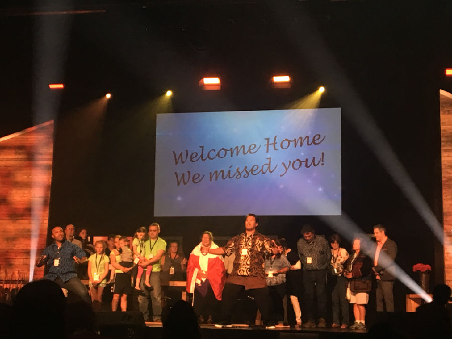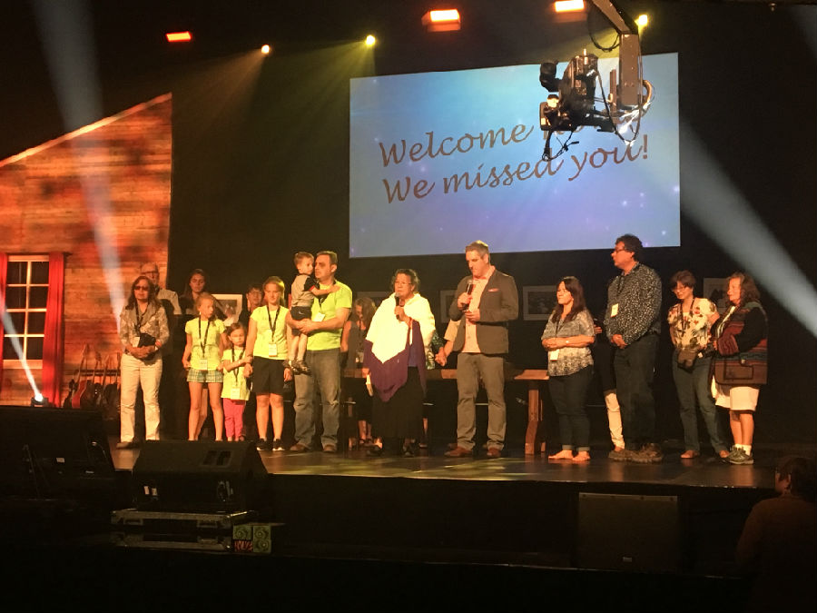 回家聚集开始时,当地原住民的一位女酋长上台祷告。