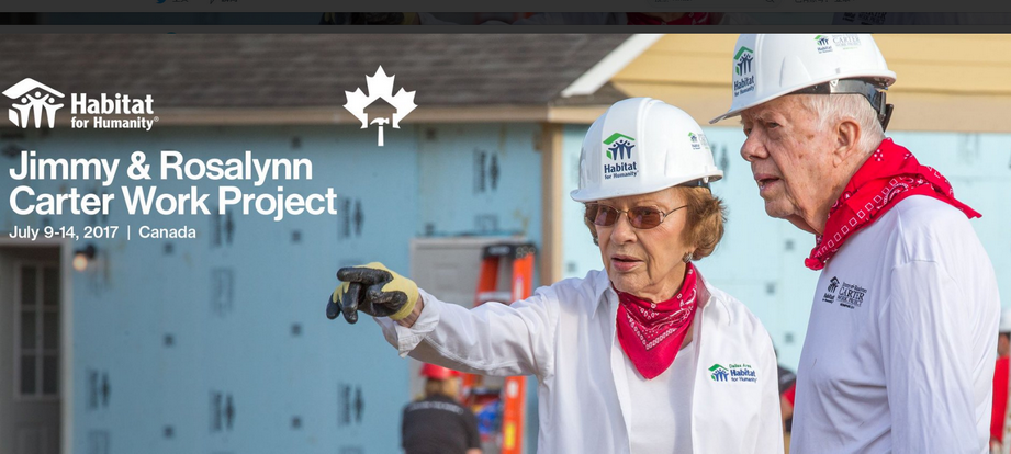 为庆祝加拿大建国150周年,由美国前总统吉米·卡特(Jimmy Carter)与妻子罗莎琳于7月9日至11日一同赴加拿大,四天时间带领团队一同当地有经济等不同困难的居民建造150个新家,给他们提供一个可栖息的场所。