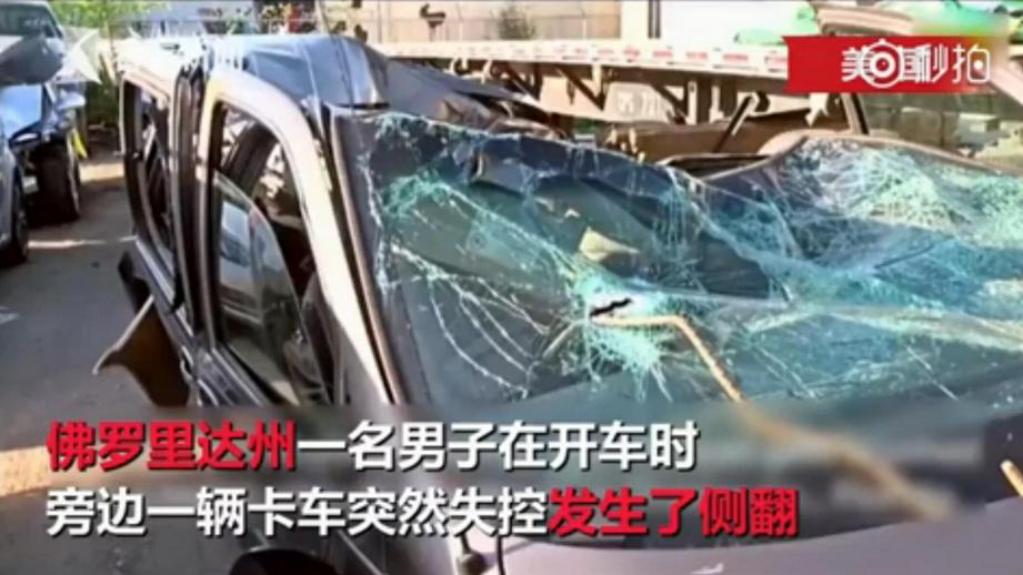 这位36岁美国佛罗里达州男子驾车经过佛州一座高速公路时,附近一辆满载废铁的卡车突然失控翻覆,卡车上的巨型金属水管被抛出,不偏不倚地砸中艾斯科巴的车顶。