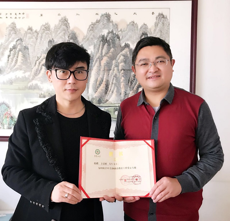 卞秉彬(左)被邀请成为青爱工程爱心大使。(图:卞秉彬提供)