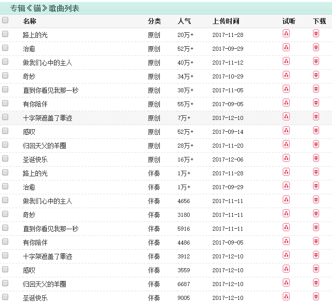 此次的专辑共有20首曲子,已经上传到网络上,许多弟兄姐妹已经一听为快。