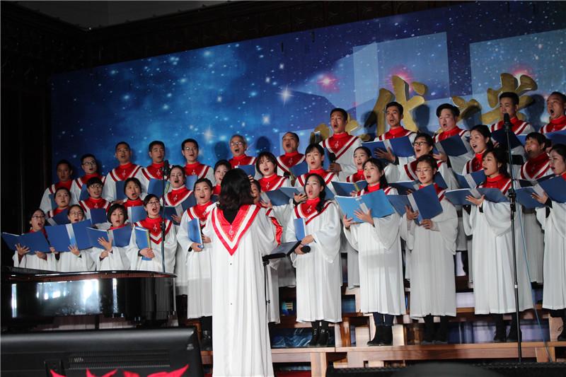 紧接着,一群活泼的小孩子也加入到敬拜队伍当中,随着音乐的律动欢快地舞蹈,高唱《Away in A Manger》(马槽圣婴)与《我已得自由》,天真的表演博得了最热烈的掌声。