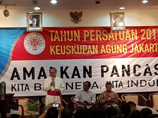 天主教雅加达总教区的依纳爵·苏哈约(IgnatiusSuharyo)总主教在其本年首份牧函中宣布,2018年为“团结年”,他呼吁民族团结,以应对世界上人口最多的伊斯兰国家不断加剧的宗教和政治分歧。